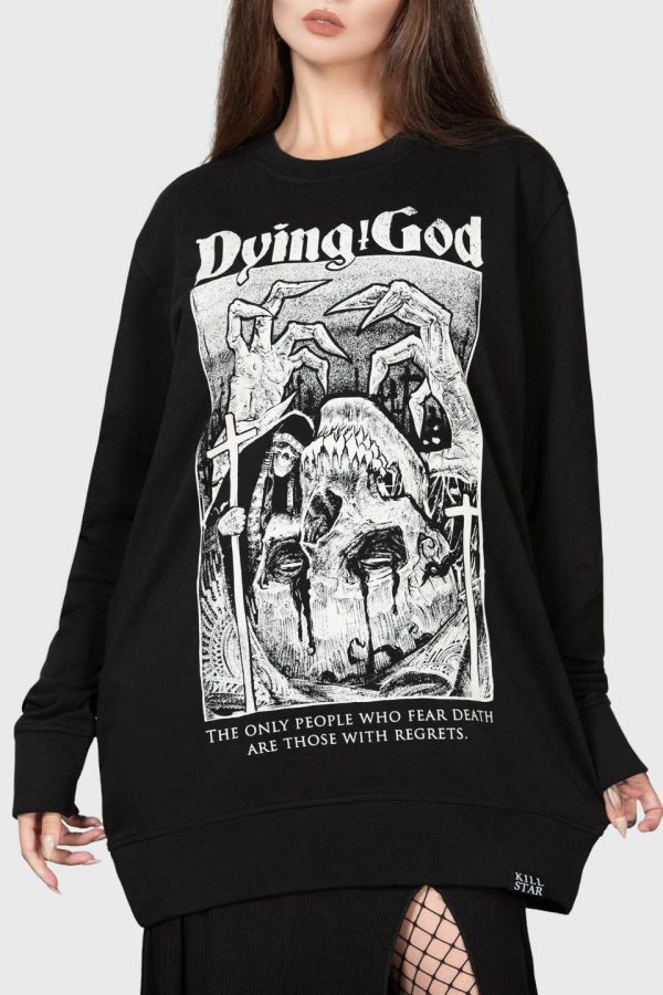 – Text reads ‘Dying God’ and ‘The only people who fear death are those with regrets.’