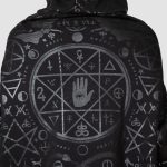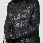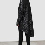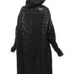 Whether you’re just keepin it chill or chanting in the deep woods – this statement piece will not disappoint. Long length, extra large ‘widow’-hood and statement black-on-black print all-over.