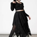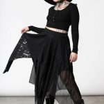 He that dares not grasp the thorn – should never crave the rose. Feel entirely divine in the ‘Death Valley’ skirt. Combining darkness and decadence perfectly – conjured using a super soft fabric which drapes and stretches perfectly for a killer fit! Complete with distressed details and a hanky hem, this statement piece is an opulent addition to any dark vamps collection – looks deadly dressed up or down!